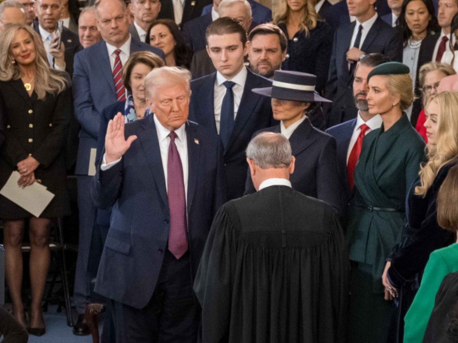 President-elect Donald Trump takes the oath of office, Jan. 20, 2025. Photo courtesy of the Joint Congressional Committee on Inaugural Ceremonies (JCCIC). Public domain.