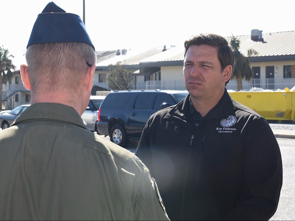 Florida Gov. Ron DeSantis visits Tyndall Air Force Base in Florida, Jan. 16, 2019. U.S. Air Force photo by Airman 1st Class Solomon Cook. Public domain.