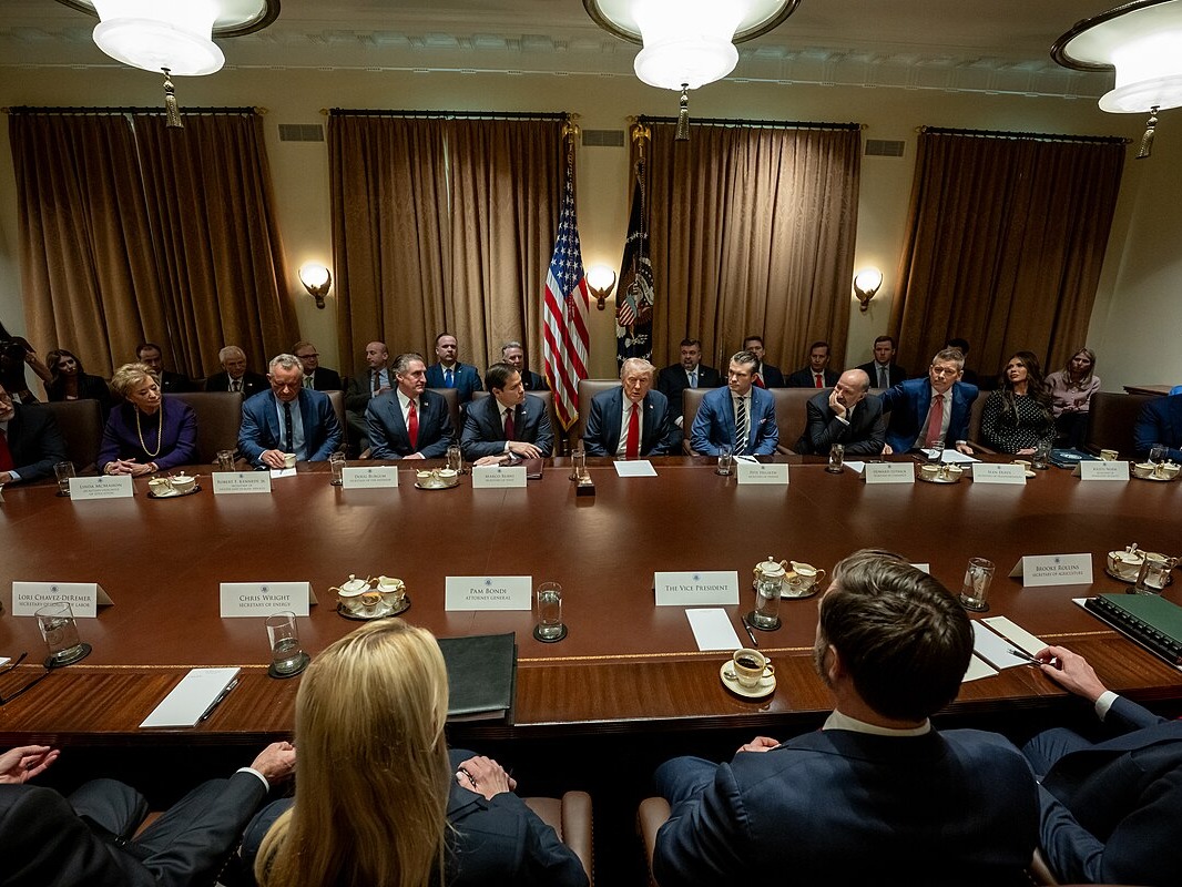 President Donald Trump holds a cabinet meeting, Wednesday, February 26, 2025, in the Cabinet Room.jpg). Photo by Molly Riley and courtesy of The White House. Public domain.