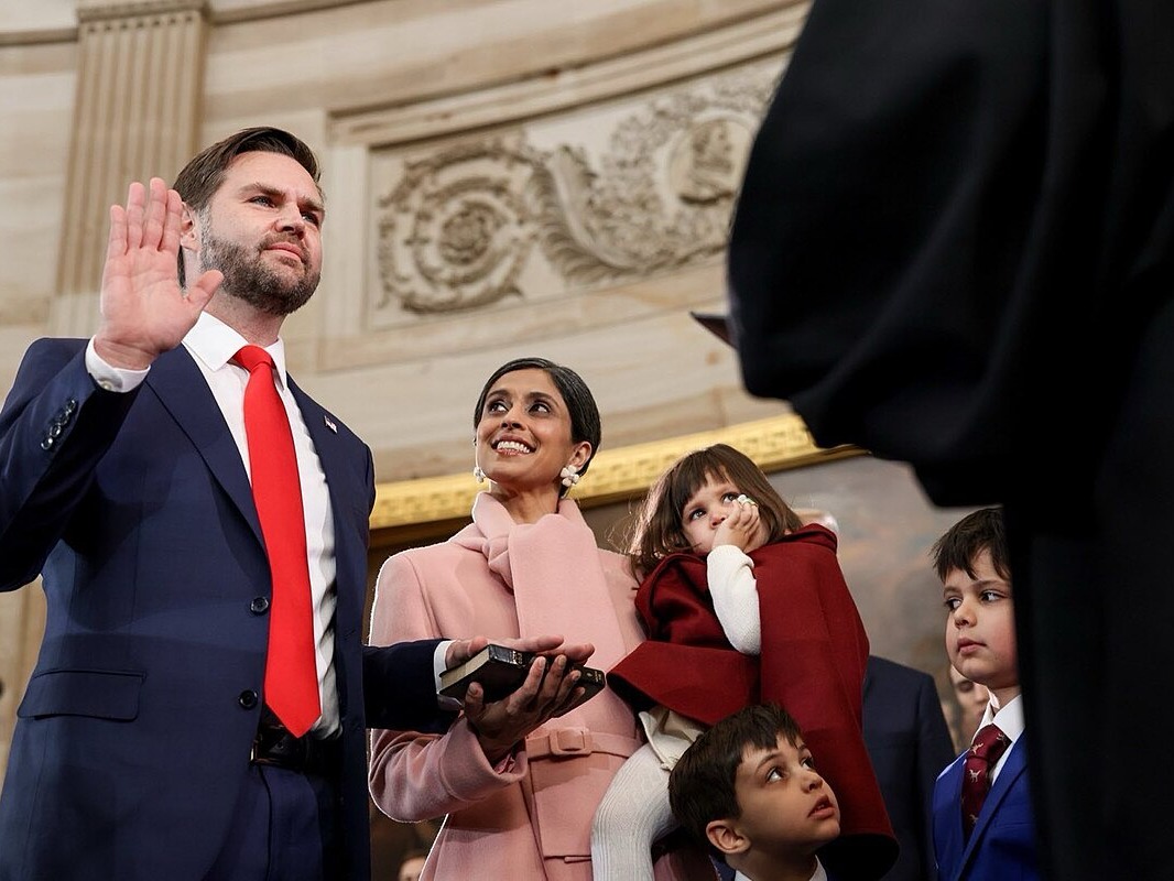 Vice President JD Vance is sworn in, Jan. 20, 2025.jpg). Photo courtesy of the Office of Vice President of the United States. Public domain.